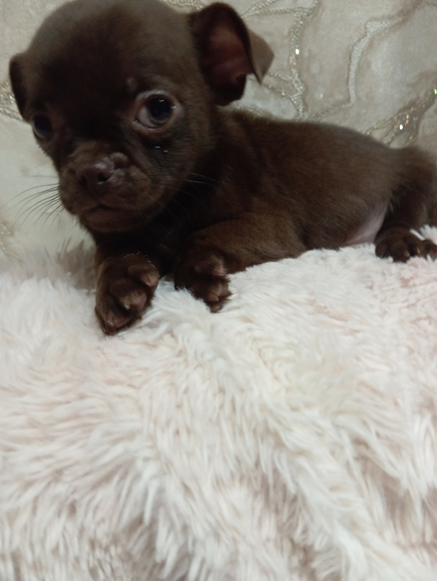 Продаеться мальчик породы чихуахуа.Тип кобби,горько шоколадного цвета,привит,имеет международный паспорт .Кушает корм Роял Канин.Цена 35 т.Макеевка.тел.+79495694761. Доставка оговаривается.