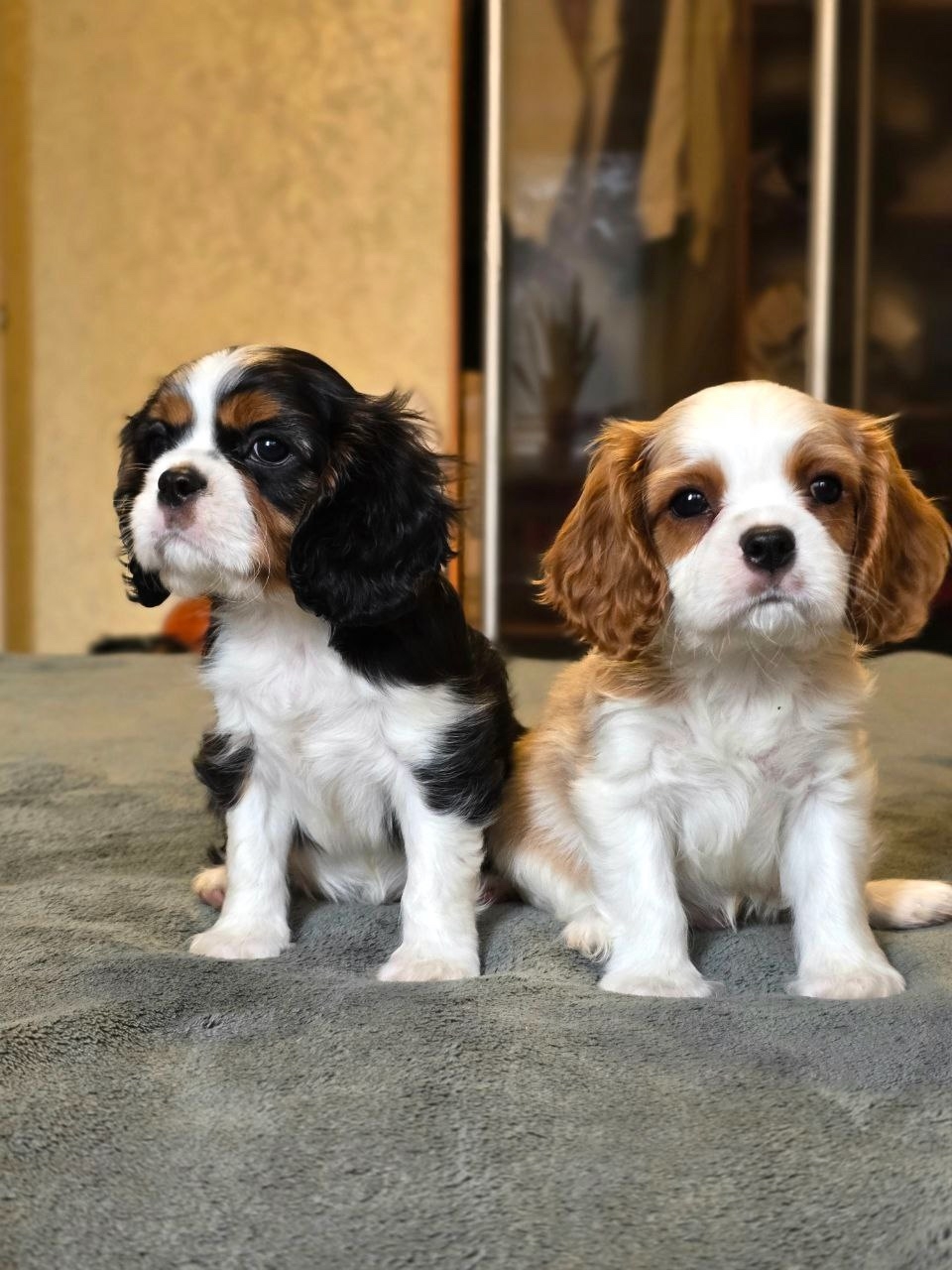 Есть девочка ( окрас бленхейм) и мальчики( бленхейм и триколор).