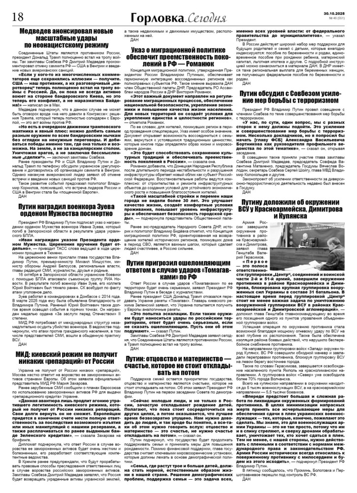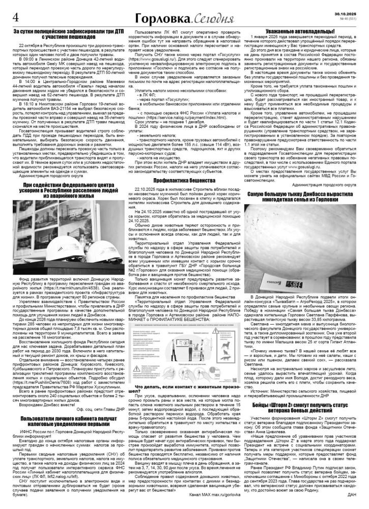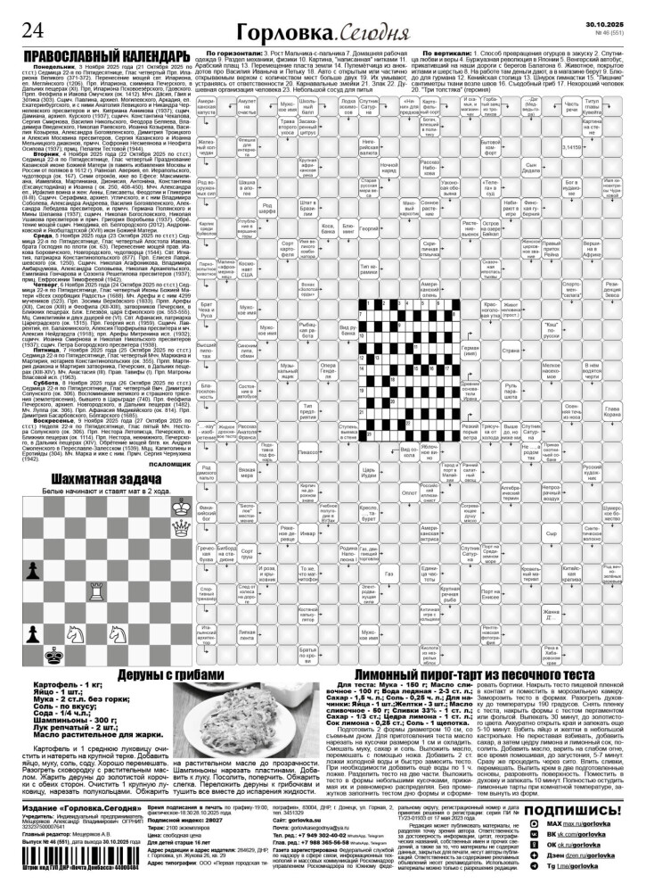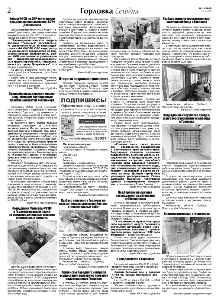 🗞 30 октября 2025 года, вышел новый выпуск общественно-информационной газеты «Горловка.Сегодня» 🇷🇺 №46 (551). 24 полосы, тираж 2100 экз., газета выходит каждый четверг. 📰 Горловка в MAX https://max.ru/gorlovka