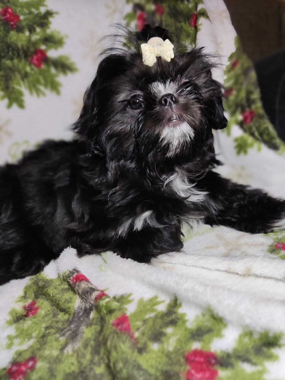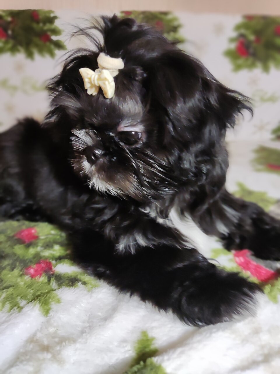Девочка Ши-Тцу, редкого чёрного окраса, бейби фейс. Рождена 12.09.25. От паразитов обработана, первая прививка сделана. Все вопросы по телефону +79494405223. Донецк.