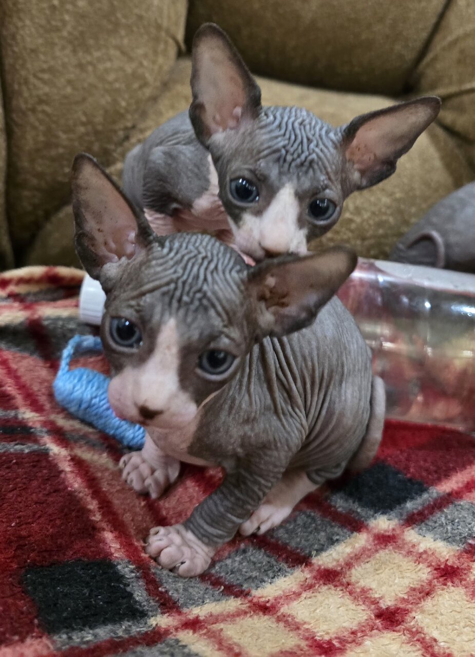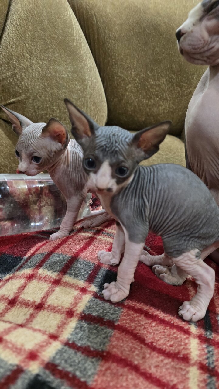 Готовы к продажи, чудесные котята канадского сфинкса!!)) 2 девочки и 3 мальчика Родились 22.01.26.г. Кушают корм, лоток знают на отлично)