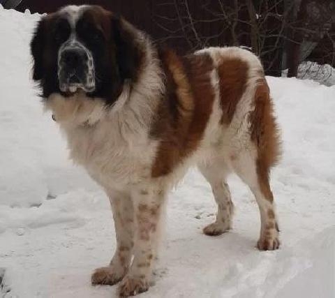 Московская сторожевая — кобель приглашает подружку для встречи с целью создания потомства. Молодой, не развязан. Донецк.