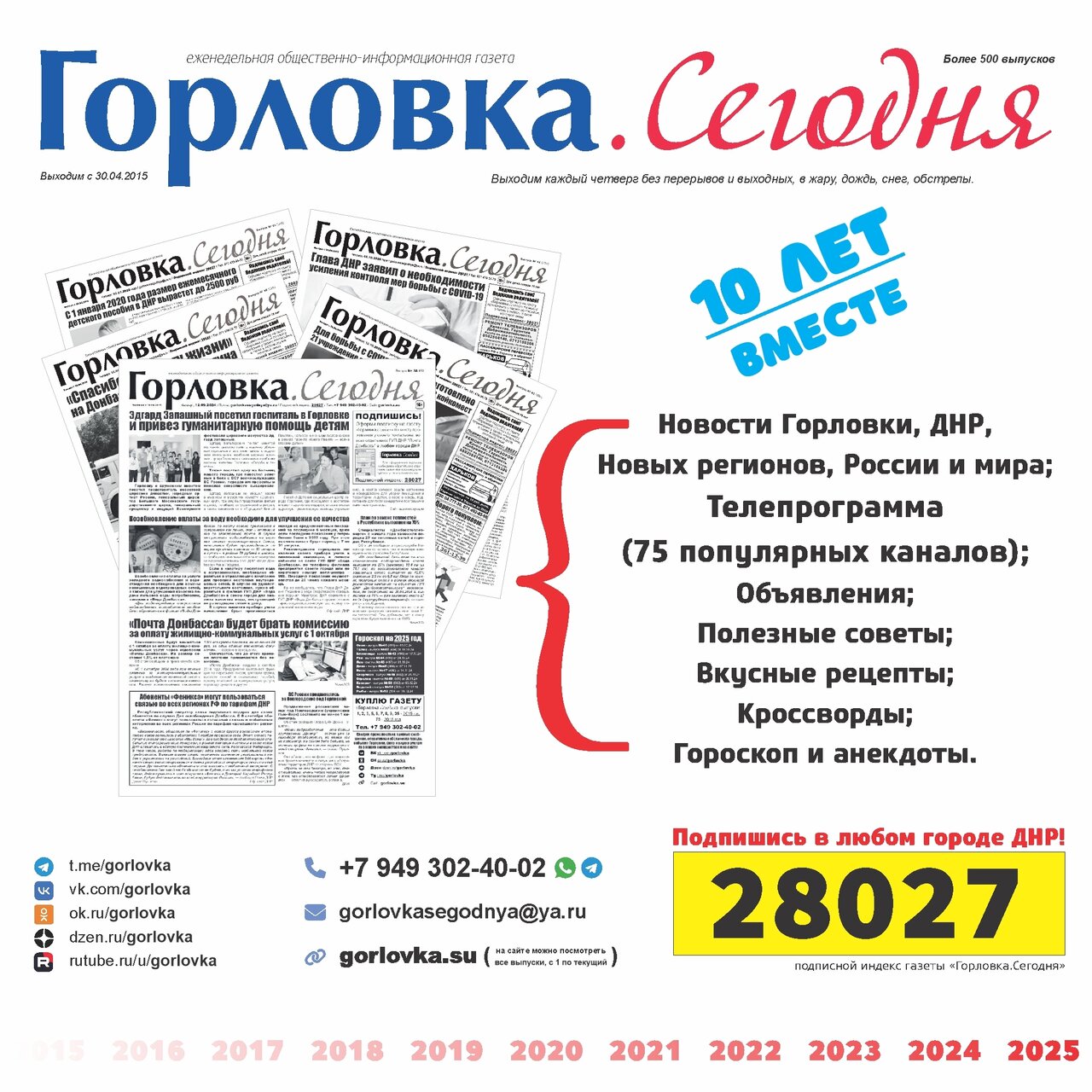 ✅ #Газета «Горловка.Сегодня» состоит из: новостей Горловки, ДНР, ЛНР, России и мира, телепрограммы (более 70 популярных телеканалов), объявлений, советов, рецептов, кроссвордов, гороскопа.