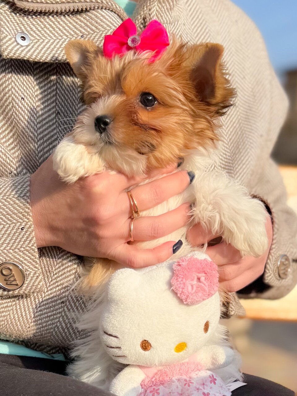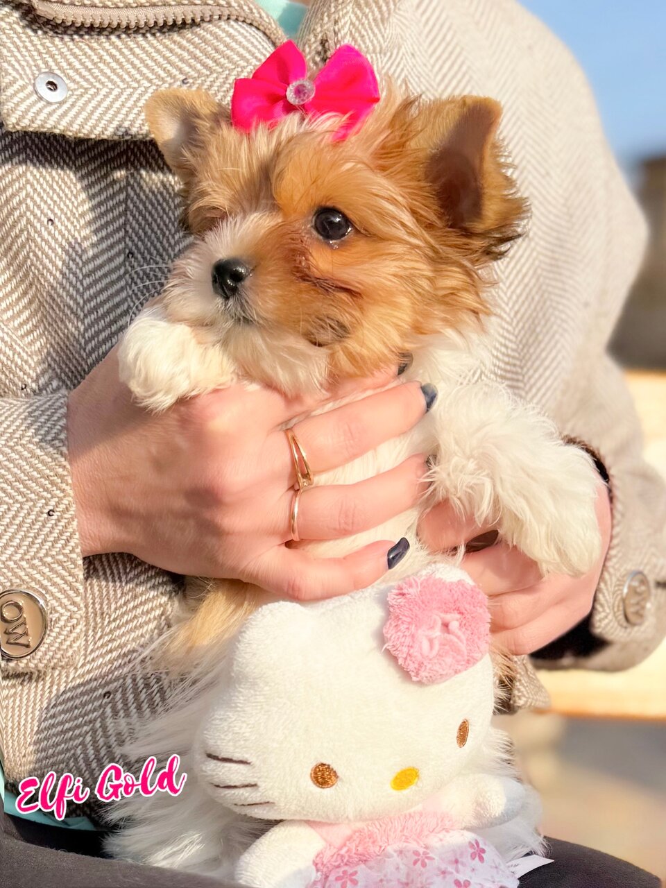 Красотулечка 🎀Elfi Gold 🎀бело -золотая красотулечка цветного йоркширского терьера от красивейшей пары родителей предлагается к бронированию. Яркая , нежная , милейшая куколка не реального окраса Здоровенькая , активная с красивейшим густым волосом . Дата рождения 05.01.2026 года , на момент переезда в семью полный пакет документов ( метрика щенка , ветеринарный паспорт с вакцинацией по возрасту , чип ) . Профессиональное образцовое воспитание , сопровождение по уходу до обмена документов , бережная доставка лично , показ онлайн . Мариуполь , WA,TG, MAX +79497099197