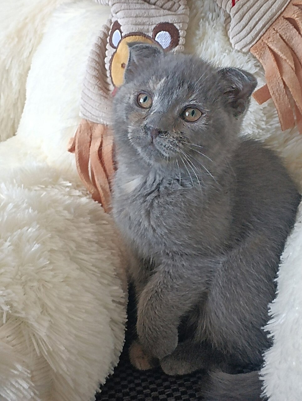 Шотландская вислоухая девочка,очень ласковая и игривая,3 мес,к лотку приучена,кушает сухой корм и натуралку,цена 10 тыс ,находимся г.Донецк ,+79494045011