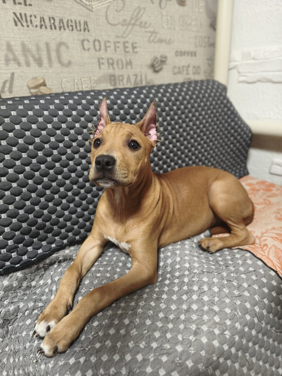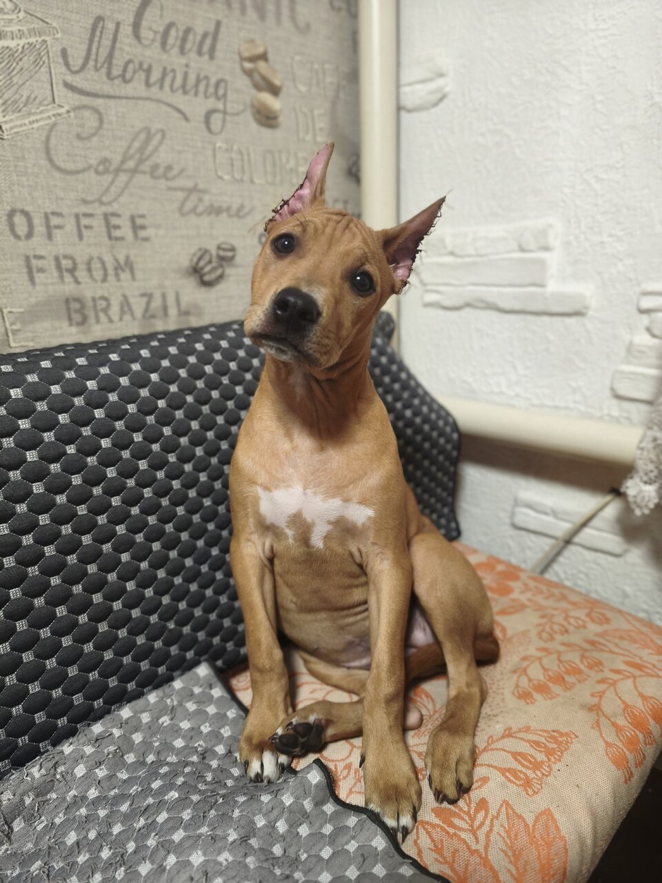 Продажа щенка АСТ американский стаффордширский терьер. Красивая рыжая девочка проглистованная ,сделана прививка есть вет паспорт , знает базовые команды Макеевка +79493544926